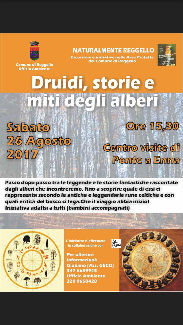Sabato prossimo, 26 agosto, con ritrovo alle 15,30 al Centro Visite di Ponte a Enna si potrà fare un’escursione tra “Druidi, storie e miti degli alberi”. Durante il cammino saranno illustrate ai partecipanti le leggende e le storie fantastiche raccontate dagli alberi presenti sui sentieri. Si inizieranno a conoscere le leggendarie “rune celtiche” e le entità legate al bosco. La camminata è adatta a tutti compresi i bambini (che dovranno però essere accompagnati da un adulto).