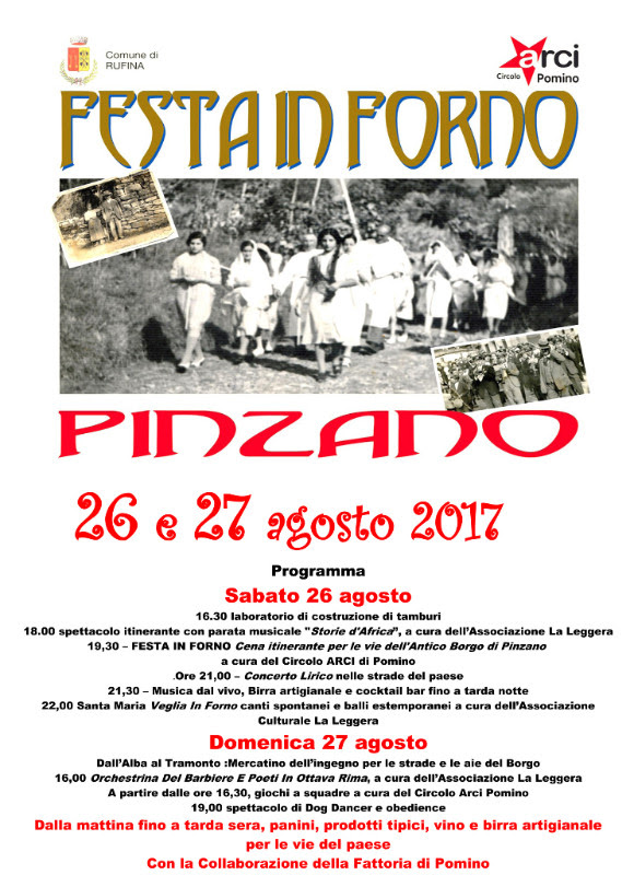 Domani e domenica nella località rufinese si celebra la “Festa in Forno”. La manifestazione ricorda la presenza di numerosi forni comunitari di panificazione, in questo suggestivo luogo. L’iniziativa è organizzata dal Comune di Rufina e dal Circolo Arci di Pomino.