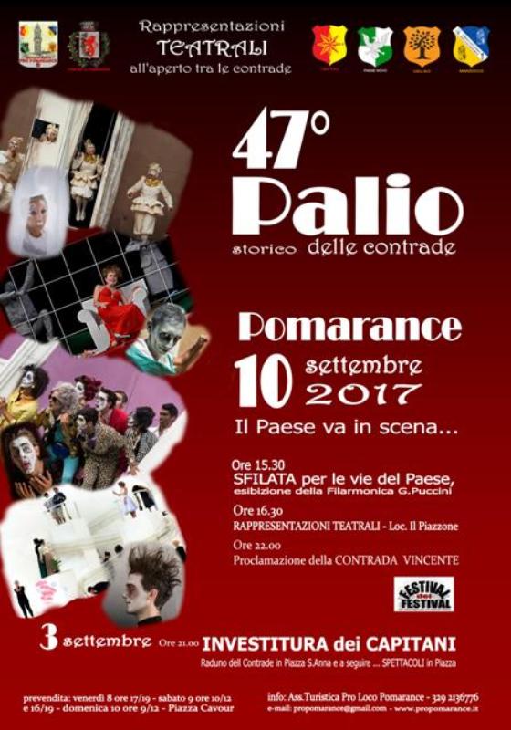 POMARANCE – Torna il Palio Storico delle Contrade: le contrade di Pomarance, Marzocco, Centro, Gelso e Paese Novo si sfideranno come di consueto con delle rappresentazioni teatrali nel vecchio campo del Piazzone, dove un tempo si correva il palio con i cavalli alla “tonda” e nel quale le contrade allestiscono grandi scenografie sulle quali si esibiscono gli attori delle quattro contrade. Ogni contrada ha tempo 30 minuti per eseguire la loro rappresentazione che va tutta in diretta, dalla recitazione, alle musiche di sottofondo ai movimenti scenici. Come ogni anno è prevista una grande partecipazione per la realizzazione di scenografie, costumi, musiche e allestimenti.