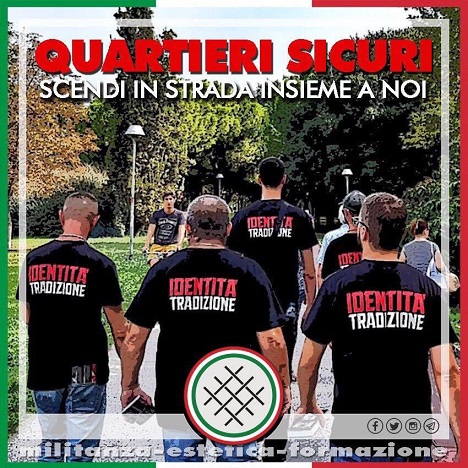 Mentre le forze dell’ordine sono quasi esclusivamente impegnate a contrastare pericolosissimi assembramenti di cittadini comuni stremati da mesi di chiusure e i sindaci si apprestano a sguinzagliare 60.000 “assistenti civici” nelle nostre strade per incrementare questo assurdo controllo sociale a senso unico, i militanti delle Comunità aderenti alla Rete lanciano l’operazione “Quartieri Sicuri”, invitando gli italiani a riprendere il controllo della propria vita a partire dalla propria via, dal proprio quartiere, dal proprio paese.